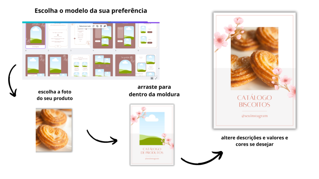 Você irá receber modelos de sites prontos para adicionar seu catálogo e usar de forma estratégica através do link na bio do seu Instagram.